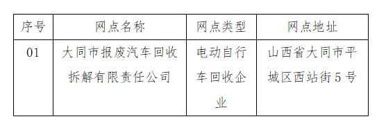 关于设定云冈区电动自行车锂离子电池回收网点(首批)的公告