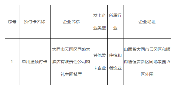 云冈区单用途预付卡(其他发卡企业)备案信息表