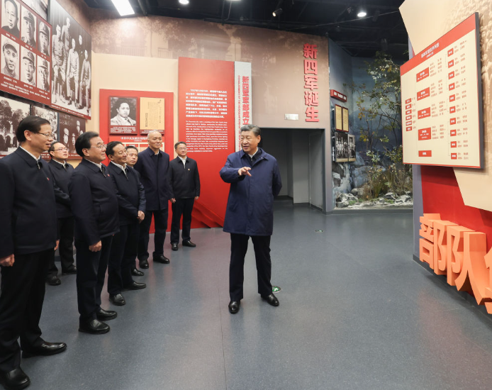 12月3日,中共中央总书记、国家主席、中央军委主席习近平在上海考察结束返京途中,来到江苏省盐城市参观新四军纪念馆。新华社记者 王晔 摄