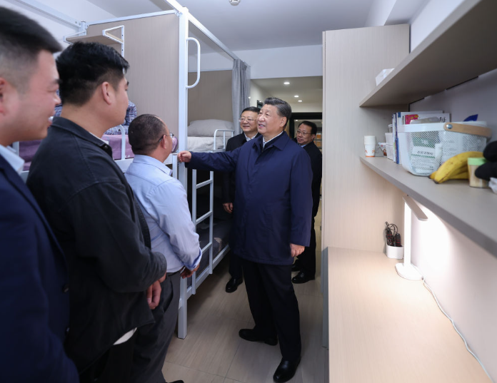 近年来,上海市加快保障性租赁住房建设,为许多来沪新市民、青年人和一线务工人员提供了住房保障。29日下午,习近平到闵行区新时代城市建设者管理者之家考察。听了当地加大保障性租赁住房筹措建设力度、构建“一张床、一间房、一套房”多层次租赁住房供应体系的情况介绍,习近平给予充分肯定。他先后走进社区住宅型、宿舍型出租房源租户的住房和公共厨房、公共洗衣房等共享空间,仔细了解在此居住的城市一线工作者的生活状况。总书记无微不至的殷切关怀,让在场所有人感动。离开时,社区居民纷纷围拢过来欢送总书记。习近平说,看到来自五湖四海的建设者在这里安居乐业,感到很高兴。城市不仅要有高度,更要有温度。我们的社会主义就是要走共同富裕的路子。外来务工人员来上海作贡献,同样是城市的主人。要践行人民城市理念,不断满足人民群众对住房的多样化、多元化需求,确保外来人口进得来、留得下、住得安、能成业。
