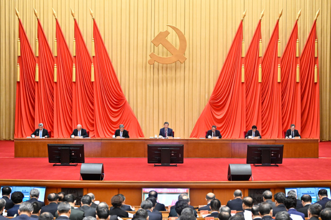 1月12日,中共中央总书记、国家主席、中央军委主席习近平在中国共产党第二十届中央纪律检查委员会第五次全体会议上发表重要讲话。李强、赵乐际、王沪宁、蔡奇、丁薛祥、李希出席会议。新华社记者 岳月伟 摄