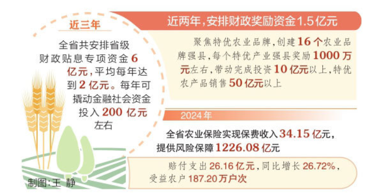 近年来,我省各级财政支农资金规模逐年增长,不断创新财政支持方式,强化财政金融协同联动,探索出“一贴二奖三保险”的财政资金使用管理路径,让越来越多的农民和经营主体得到了实惠。
