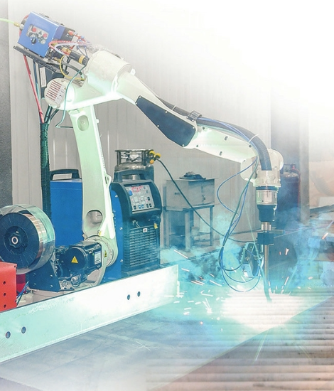 山西中部智造科技有限公司内,智能机器人在进行焊接作业。闫锐鹏 摄