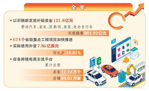 省商务厅厅长王宏晋介绍说:“我们出台促消费政策,培育新型消费,推进商旅文体健融合发展,消费对经济增长的基础性作用持续增强。”数据显示,2024年—2025年,全省消费品以旧换新共拉动消费增长1107.3亿元,参与人次超过1100万。2025年1—11月,全省社会消费品零售总额增长5.4%,高于全国平均水平1.4个百分点。