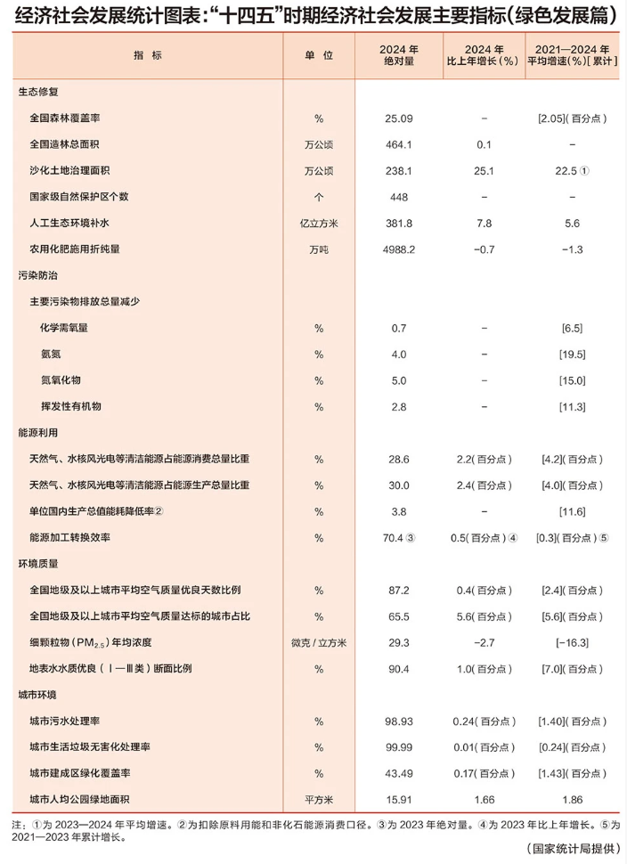 经济社会发展统计图表:“十四五”时期经济社会发展主要指标(绿色发展篇)