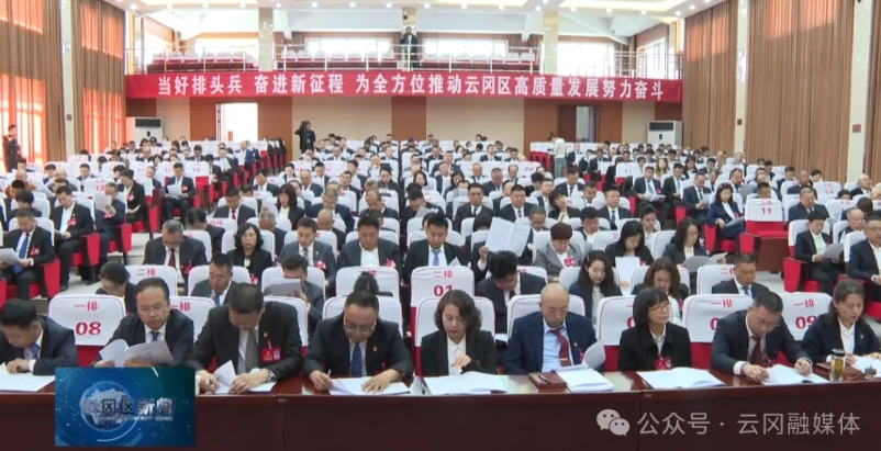 是日上午,云冈大地天朗气清、风和日丽。区委党校会场庄严隆重、气氛热烈,象征全国各族人民大团结的政协会徽悬挂在主席台正中,十面鲜艳的红旗分列两侧。二楼眺台上悬挂着“当好排头兵奋进新征程为全方位推动云冈区高质量发展努力奋斗”横幅。