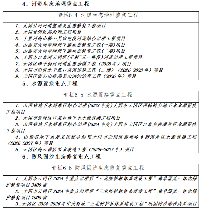 区域范围:主要涉及区域为云冈区全境内的十里河、甘河、口泉河、御河、峰子涧河,累计河道治理长度为98.473km。