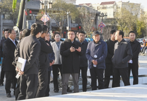 11月11日,市委书记张强深入古城调研,督导检查项目建设进度,协调解决项目建设问题,深度谋划古城整体保护规划、有机更新等。他强调,要深入贯彻习近平总书记“人民城市人民建,人民城市为人民”重要理念,始终坚持保护第一,坚持高起点规划、高标准推进,加快古城重点项目建设,深入开展古城更新行动,着力打造高品质古城发展空间。市委常委、常务副市长翟永清及平城区和有关部门负责同志参加。