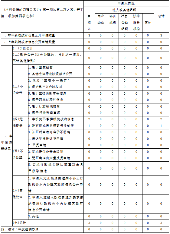 本年度我局共受理自然人申请政府信息公开件3件,受理的申请件已全部按规定在法定期限内予以答复。